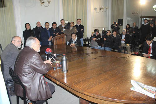 Política | En rueda de prensa con medios locales y nacionales que se desarrolló en el Salón Verde de Casa de Gobierno esta mañana, el gobernador Ricardo Colombi reelecto en el acto electoral de ayer por más del 50% de los votos, quién estuvo acompañado por el ministro Secretario General de la Gobernación aseguró que seguirá gobernando para todos los correntinos, sin distinción de colores ni partidos, como lo viene haciendo desde que inició su gestión al frente del Poder Ejecutivo Correntino.