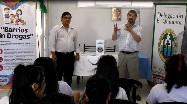 Información General | El acto se realizó este miércoles en la delegación municipal del sector y contó con la presencia de funcionarios comunales, vecinos y alumnos del colegio secundario de la zona. Desde ahora, la dependencia cuenta con una urna donde se podrán informar en forma anónima sobre los puntos de venta de sustancias ilegales.