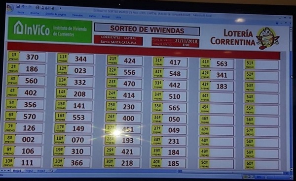 Información General | Se realizó el primero de los sorteos para los inscriptos para acceder a las viviendas que se encuentran en Santa Catalina, construidas por el Instituto de Vivienda de Corrientes. Alrededor de las 8:30 horas finalizó y se conocieron los beneficiarios.