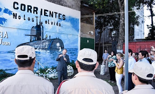 Información General | A un año de la desaparición del ARA San Juan y sus 44 tripulantes, se inauguró este jueves una plazoleta que lleva el nombre del submarino en el barrio Mil Viviendas. El viceintendente Emilio Lanari participó del emotivo acto, que contó con la participación de los vecinos.