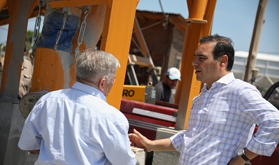 Información General | El mandatario provincial, luego de la entrega de maquinarias para la Dirección Provincial de Vialidad, visitó junto con al intendente Eduardo Tassano esta siesta, las obras de reactivación de la Planta de Hormigonado municipal, ubicada en cercanías a la intersección de Avenida Maipú y Ruta 12.