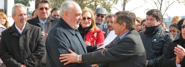 Política | El gobernador de la provincia dejo inaugurada las refacciones y construcción de un escenario, baños y vestuarios del Complejo Deportivo Municipal de la localidad de Santa Rosa, al mismo tiempo que firmó un convenio con la municipalidad para construir 1.100 metros de pavimento.