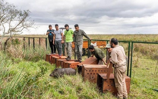 Información General | El portal San Nicolás de los esteros de Iberá recibió siete pecaríes de collar. Estos ejemplares, que forman parte de los 80 donados por el ecoparque de Mendoza, vivirán por primera vez en libertad en suelo correntino.