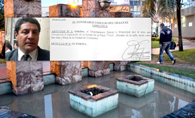 Política | El concejal del Frente para la Victoria presentó la semana pasada un proyecto de comunicación para hacerle saber al Ejecutivo Municipal conducido por el intendente Camau Espínola que la fuente de la plaza Vera necesita “urgente” reparación.