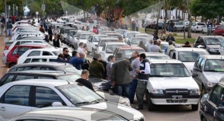 Política | La circulación por la zona céntrica quedó virtualmente paralizada por los más de 3 mil autos que marcharon desde la Costanera en rechazo a la iniciativa busca declarar "de carácter público" el servicio. Además, presentaron un petitorio a la Comuna para que el intendente "Camau" Espínola gestione el monotributo social para los choferes.