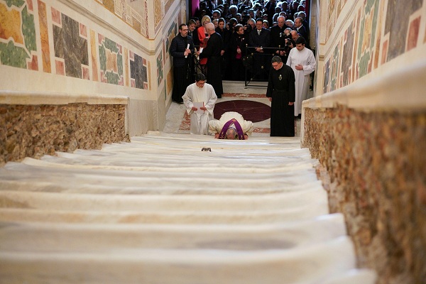 Internacionales | La escalera de 28 peldaños de mármol que subió Jesucristo para ser juzgado, se ve desde este jueves, por primera vez en 300 años, sin la madera que la cubría por protección.