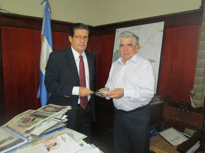 Política | Fue al compartir una jornada de trabajo junto al Secretario de Medio Ambiente y Desarrollo Sustentable de la Nación, Juan José Mussi y una decena de Intendentes. En la oportunidad se entregó una autobomba para los bomberos voluntarios de Saladas y el Jefe Comunal de Santa Rosa, Juan José Encinas firmó un convenio por similar equipamiento.