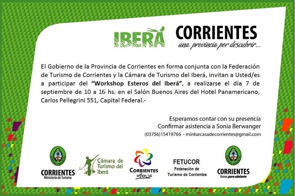 Este miércoles 7 de septiembre se llevará a cabo el “Workshop Esteros del Iberá”, de 10 a 16 hs. en el Hotel Panamericano Buenos Aires.