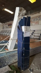 Un hecho insólito ocurrió ayer en una cancha de básquet de la localidad de Mercedes, cuando la jirafa se desplomó sorpresivamente, hiriendo en consecuencia a un deportista que se encontraba practicando.