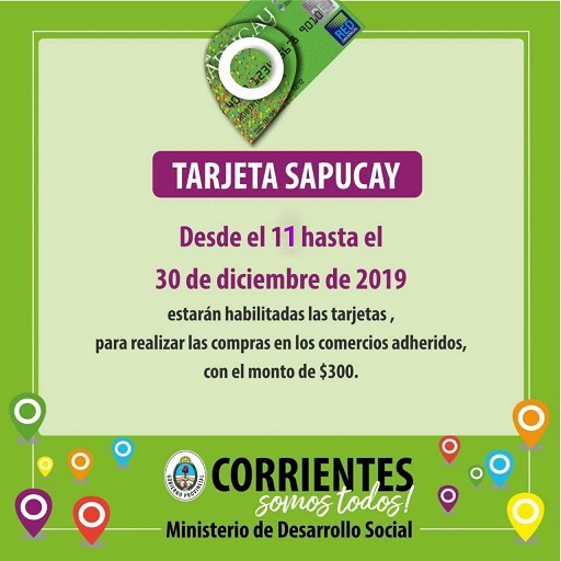 Ya se encuentra habilitada la tarjeta Sapucay para realizar compras en los comercios adheridos hasta 300 pesos. Los plásticos podrán utilizarse con estos montos hasta el próximo 30 de diciembre.Miércoles, 11 de diciembre de 2019