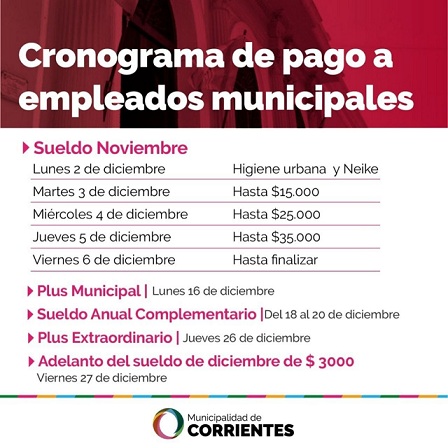 Hoy lunes 16 de diciembre empieza el pago del plus para empleados municipales de la Capital. Cronograma completoLunes, 16 de diciembre de 2019
