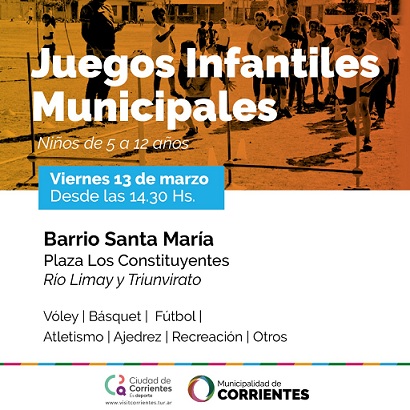 Este viernes desde las 14.30, el barrio Santa María recibirá a los Juegos Infantiles Municipales, destinado a niños y niñas de 5 a 12 años. En esta segunda edición habrá diversas actividades deportivas gratuitas, además de propuestas recreativas para los chicos de la zona.