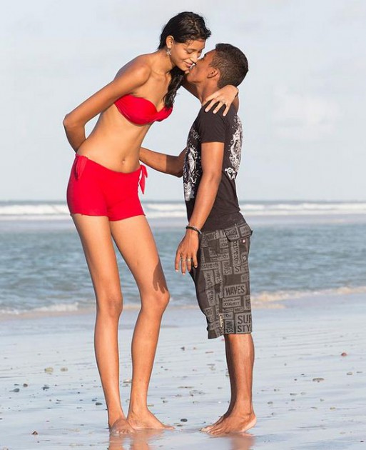 Esto ha pensado Elisany da Cruz Silva, la adolescente más alta del mundo quien se enamoró de un muchacho que le queda, exactamente, a la altura de los pechos. Ella, con sus 2 metros 6 centímetros, padece de gigantismo debido a un tumor en la glándula pituitaria.
