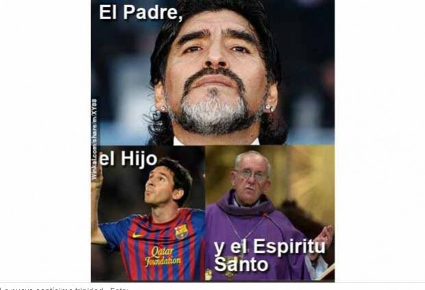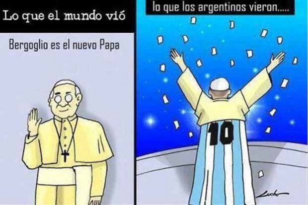 La elección de Jorge Bergoglio revolucionó las redes sociales. El mundo se hizo eco de la noticia. En Argentina, el hecho todavía causa asombro. En la web aparecieron varios de los típicos afiches futboleros para festejar de alguna manera la noticia. En la mayoría aparecen Diego Maradona y Lionel Messi, el Dios y el Messías de la pelota.