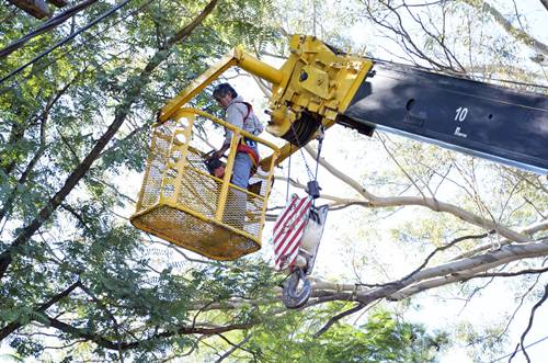 Las Tareas contaron con la Intervención de dos Hidrogruas, un Través de las Cuales sí podaron las ramas del Árbol de gran dimensión, párrafo Evitar Que las Mismas no terminen ocasionando Daños Físicos y Materiales de los Habitantes de la zona, ya Que ademas comprometía el cableado eléctrico.