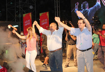 Lo acompañaron los candidatos a intendente y vice, Pedro Braillard Poccard y Estela Regidor, en el marco de un espectáculo musical en el que estuvieron Agapornis y Diego Gutiérrez, entre otros.