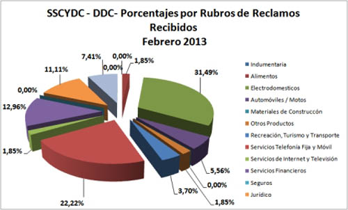 Política | La Subsecretaria de Comercio y Defensa del Consumidor (organismo que conduce el Dr. Juan José López Desimoni) dependiente del Ministerio de Producción, Trabajo y Turismo, informa que durante el mes de Febrero de 2013 y pese a tratarse de un mes baja actividad por las vacaciones, se mantuvo elevada la cantidad de reclamos y denuncias presentadas por consumidores y usuarios ante dicho organismo.