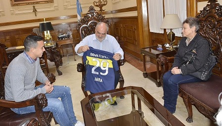 Información General | El gobernador Ricardo Colombi, desprovisto de todo protocolo recibió al jugador Leonardo Jara, que recientemente se consagró campeón vistiendo la camiseta de Boca Juniors.