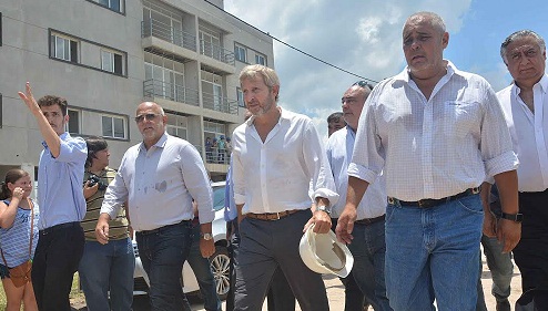 Información General | Luego de visitar Mercedes, Concepción y Lomas de Empedrado este miércoles por la mañana, el gobernador Ricardo Colombi y el ministro del Interior, Obras Públicas y Vivienda de la Nación, Rogelio Frigerio, recorrieron las obras que se llevan adelante con fondos nacionales en el predio de Santa Catalina en la ciudad de Corrientes. Al respecto el funcionario que visitó la Provincia informó que el proyecto urbanístico se encuentra concluido en un 80 %, y anunció que para junio ya se podría empezar a entregar las casi 700 viviendas que forman parte del Programa Crédito Argentino (PROCREAR).