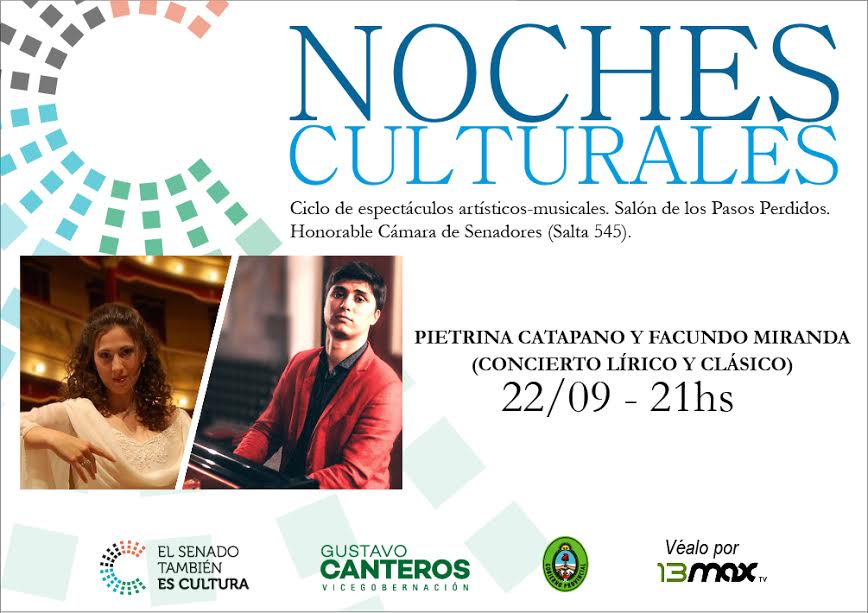 Información General | La soprano Pietrina Catapano y el pianista Facundo Miranda brindarán un concierto especial en las Noches Culturales del Bicentenario,este jueves 22 en el Salón de los Pasos Perdidos de la Legislatura, dentro del ciclo impulsado por el vicegobernador Gustavo Canteros.