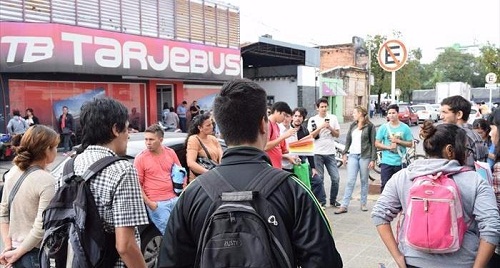 Información General | Durante la mañana de ayer un grupo de estudiantes realizaron una manifestación frente a las oficinas de la empresa Tarjebus, reclamando mejores condiciones en el transporte urbano y menos requisitos para poder obtener el beneficios del boleto estudia