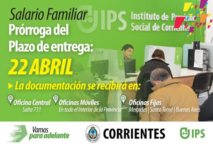 Información General | El Instituto de Previsión Social (IPS) prorrogó hasta el 22 de abril la entrega de la documentación de escolaridad y supervivencia que tienen que presentan los beneficiarios para seguir cobrando el salario familiar.