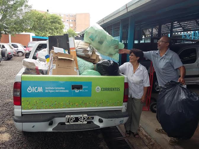 Información General | El Instituto Correntino del Agua y del Ambiente realizó la primera entrega del año de material para reciclar, totalizando 239 kilogramos de papel, cartón, botellas plásticas y tapitas plásticas, acción de Buenas Prácticas Ambientales (BPA) que conlleva un doble propósito, el ambiental y el solidario en articulación con las instituciones que llevan adelante las mismas.
