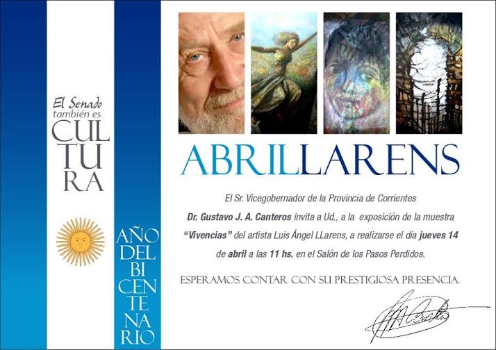 Información General | El programa El Senado También es Cultura dejará inaugurada la temporada 2016 con la muestra “Vivencias” de Luis Ángel Llarens, el jueves 14 a las 11 hs., en el Salón de los Pasos Perdidos de la Honorable Legislatura.