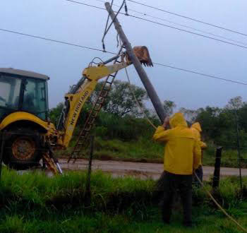 Información General | Personal y operarios de la DPEC continúan con tareas de reposición de líneas, pese a que las condiciones climáticas atentan contra el movimiento de las cuadrillas en parajes ubicados entre Caá Catí e Itá Ibaté.