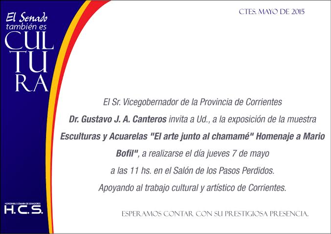 Información General | En el marco del programa El Senado también es Cultura el vicegobernador, Gustavo Canteros, invita a la muestra de esculturas y acuarelas: El arte junto al Chamamé".