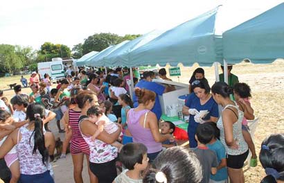 Política | Una multitud de vecinos se agolpó en la intersección de las calles Zaragoza y Calle 11 del Barrio Lomas del Mirador, en donde la cartera de Salud Pública llevó adelante la actividad que se enmarca en una fuerte apuesta del gobierno provincial para acercar los servicios de salud a la gente.