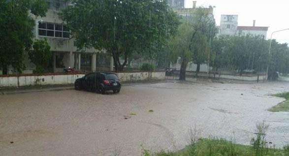 Información General | En pocos minutos la temperatura descendió 11 grados. En el centro el agua anegó lugares que siempre son problemáticos. En los barrios se sumó a los pozos generdos en calles de tierra desde las últimas lluvias.