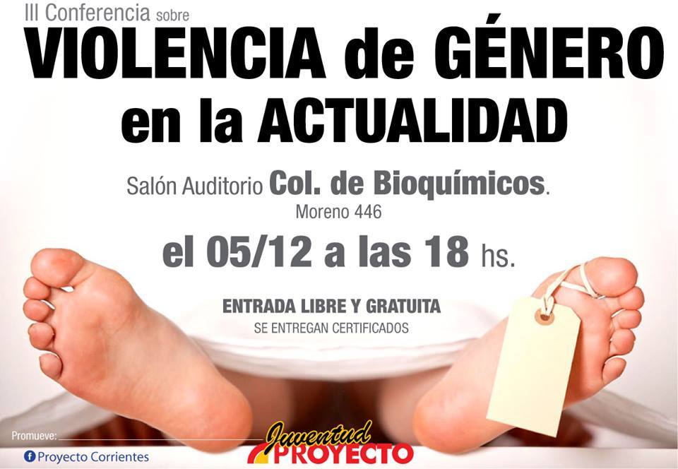 Información General | Se realizará la III Jornada sobre Violencia de Género en la Actualidad, focalizada en el tema “Femicidios”,organizada por la Juventud de Proyecto Corrientes.