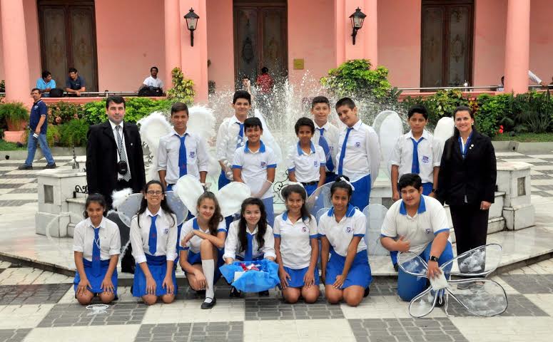 Información General | Un grupo de alumnos y docentes del Colegio Santa Ana de esta ciudad revivió la tradición correntina vinculada a la celebración de Ángeles Somos, en una recorrida por las distintas dependencias de Casa de Gobierno, esquina 25 de Mayo y Salta.