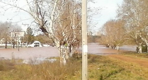 Información General | La imagen se repite a lo largo de toda la costa del río Uruguay. Casas y más casas donde solo sobresalen los techos, campos inundados, chacras con animales muertos, y desolación Hoy salió el sol, pero el agua silenciosamente crece hasta lugares adonde nunca llegó. El buen tiempo solo será hasta el jueves, cuando vuelvan las lluvias.