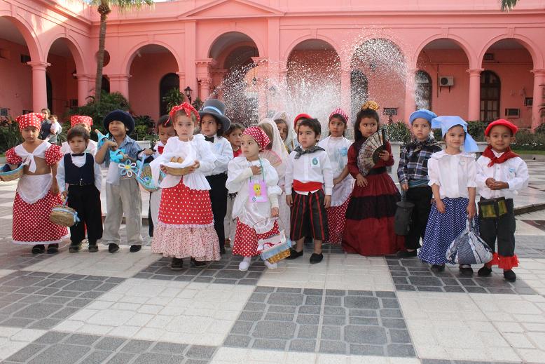 Información General | Con motivo de celebrarse la Semana de Mayo, niños pertenecientes a 17 jardines de infantes dependientes del Ministerio de Desarrollo Social e Inclusión y de la Dirección de Derechos de la Niñez y la Familia visitaron la Casa de Gobierno y transmitieron un especial saludo al gobernador Ricardo Colombi y algunos de sus funcionarios, a quienes obsequiaron suvenires alusivos a la gesta Patria.