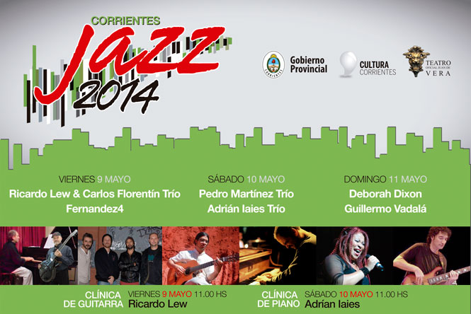 Información General | Con epicentro en el Teatro Vera, desde hoy viernes 9 y hasta el domingo 11, el público de Corrientes y la región podrá disfrutar de los grandes talentos del jazz, quienes estarán brindando su arte durante tres veladas inolvidables para los amantes de este género musical. Por su parte, desde el Instituto de Cultura se programaron para este viernes y sábado, a las 11, dos clínicas a cargo del pianista Adrián Iaies y del guitarrista Ricardo Lew.