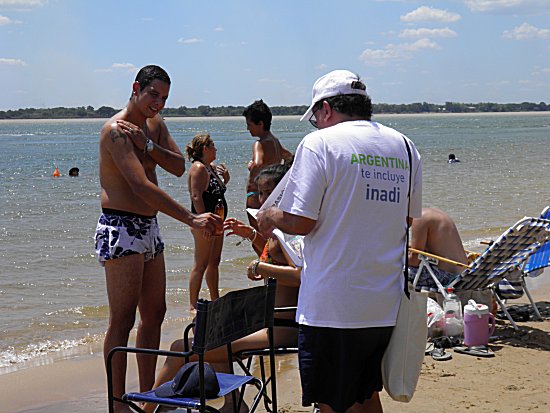 Información General | La Delegación Corrientes del INADI (Instituto Nacional contra la Discriminación, la Xenofobia y el Racismo) realiza como todos los años su "Campaña de Verano", consistente en distribución de material del organismo nacional a los bañistas de las playas habilitadas y puntos turísticos.