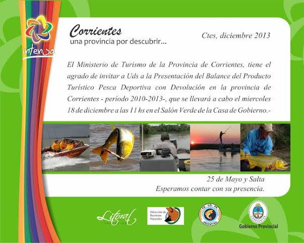 Información General | Este evento tendrá lugar el miércoles 18 de diciembre a las 11 en el salón verde de Casa de Gobierno. Por ello, el Ministerio de Turismo de Corrientes invita a participar de esta presentación del balance de los últimos cuatro años.