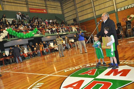 Información General | Una jornada de gran alegría y en medio de un clima festivo el básquet de Goya y especialmente de esta reconocida institución que ha dado grandes figuras en la disciplina tanto a nivel local, provincial y nacional, se concretó la inauguración del renovado piso de parquet y otras obras que mejoran la infraestructura del club, el acto fue presidido por el Gobernador de la Provincia, el intendente Ignacio Osella y el presidente de la institución Juan Antonio Faturo.