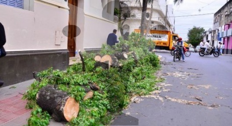 Información General | Esta siesta, como consecuencia del fuerte viento registrado en la ciudad de Corrientes, cayó un añejo árbol ubicado en la esquina de Santa Fe y Pellegrini.