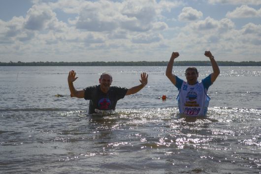 Información General | Emilio Lanari y Eduardo Tassano, Presidente y Responsable del básquet profesional respectivamente de Regatas Corrientes, cumplieron con su promesa de meterse a las aguas del río Paraná si es que 'el Fantasma' lograba el título de la Liga Nacional.