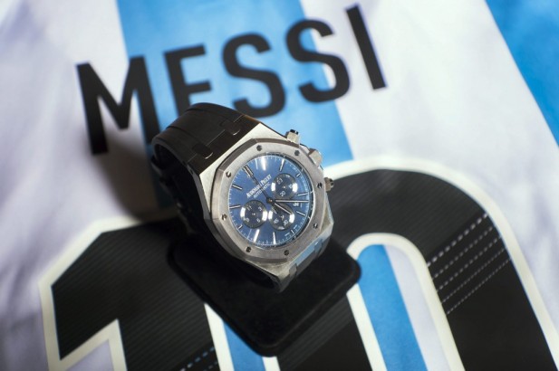 Información General | La máquina de pulsera es la número diez -en honor al número que el futbolista lleva en sus camisetas- del modelo Royal Oak Chronograph Leo Messi, una serie limitada de sólo cien piezas de la marca Audemars Piguet.