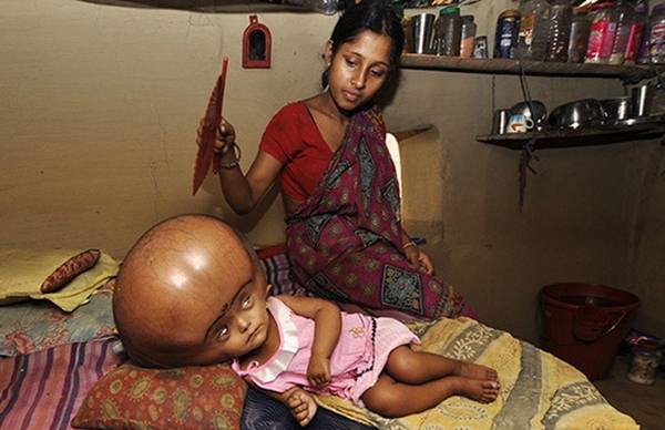 Información General | En la India, una nena de 18 meses padece un tipo de hidrocefalia que acumula líquido cefalorraquídeo en el cerebro, lo que hizo que su craneo crezca considerablemente: tiene una circunferencia de 91 centímetros. Los padres no pueden pagar la operación que cuesta 1200 dólares.