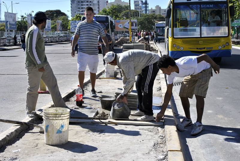 Información General | En el sector, personal comunal se encuentra colocando losetas en el parterre ubicado por calle Plácido Martínez entre las calles Salta y La Rioja. El lugar está siendo recuperado y será destinado a un módulo de espera para pasajeros del servicio de transporte urbano local e interprovincial.