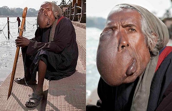 Información General | En la ciudad de Haridwar, al norte de India, vive un hombre de 65 años que padece neurofibromatosis y, desde que nació, tiene un bulto que le tapa la mitad del rostro. Su familia lo desheredó por tener este trastorno genético. Ahora, la gente lo ayuda ofreciéndole comida y ropa.