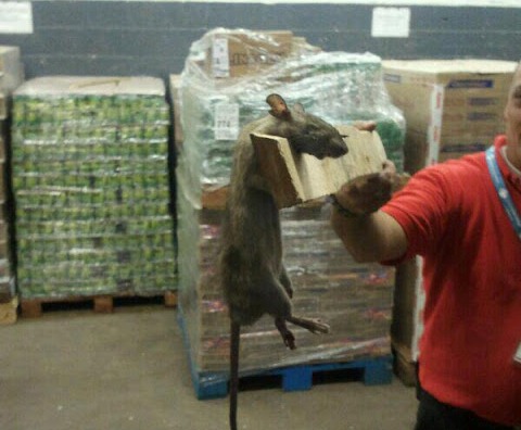 Información General | Durante la tarde del lunes comenzó a circular en las redes sociales la foto de una rata gigante encontrada en los depósitos de mercadería de una sucursal de una conocida cadena de supermercados, ubicada en Quilmes. La imagen fue difundida por un delegado del SECLA (Sindicato de Empleados de Comercio de Lanús y Avellaneda) en su Facebook.