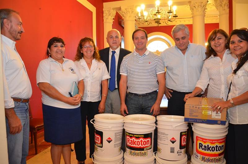 Información General | En un encuentro desarrollado en el Palacio Municipal se entregaron más de 80 litros de pintura y se definió la colaboración comunal en la mano de obra. De la entrega participaron el Intendente Camau Espínola acompañado del Diputado Fabián Ríos y el Gerente de la sucursal Corrientes del Banco Nación, Darío Pavotti.
