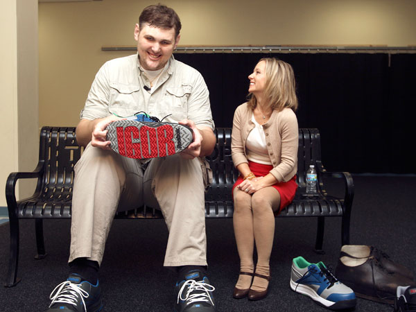 Información General | Aunque fue una orden difícil de cumplir, Igor Vovkovinskiy, el hombre más alto de los Estados Unidos, recibió su propio calzado deportivo hecho a la medida de su enorme pie.