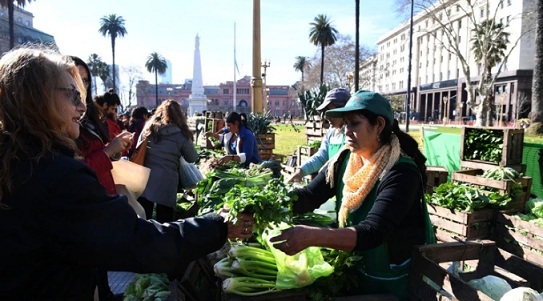 Nacionales | La Plaza de Mayo se transformó este miércoles por la mañana en pequeño mercado a cielo abierto. Las clásicas baldosas blancas del epicentro de las manifestaciones populares argentinas se cubrieron de verduras, frutas, panes y paquetes de yerba mate durante lo que se llamó "Alimentazo" y fue, estrictamente, una protesta de pequeños productores y cooperativistas que reclaman un modelo diferente de soberanía alimentaria, de producción de alimentos sanos y de personas que trabajan la tierra y que quieren tener acceso a su propio espacio.